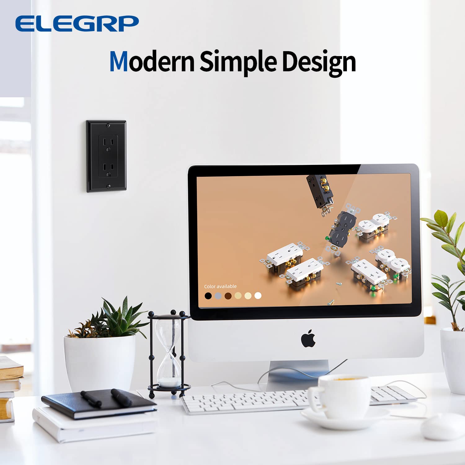 The ELEGRP Decorative Outlets provide a reliable and stylish solution for residential electrical needs. Featuring a durable thermoplastic construction, self-grounding design, and elegant matte finish, these outlets are ideal for enhancing both functionality and aesthetics.