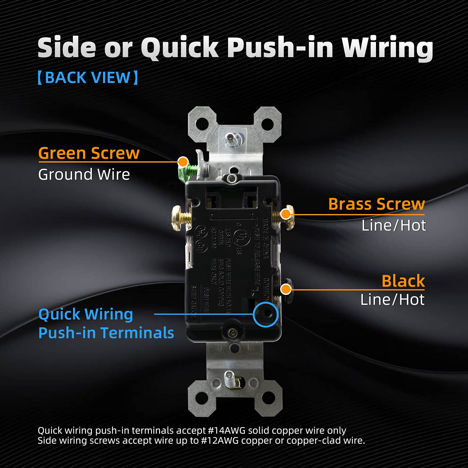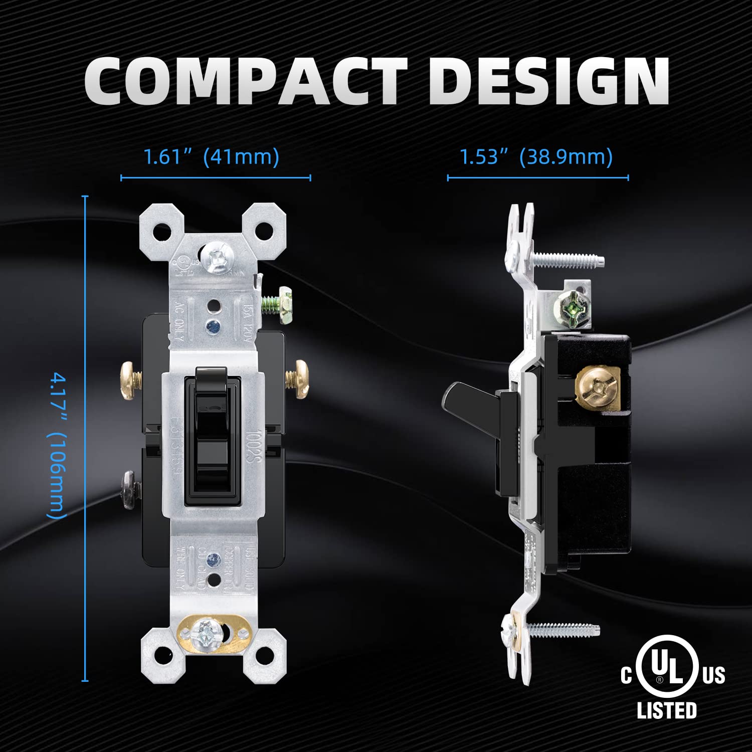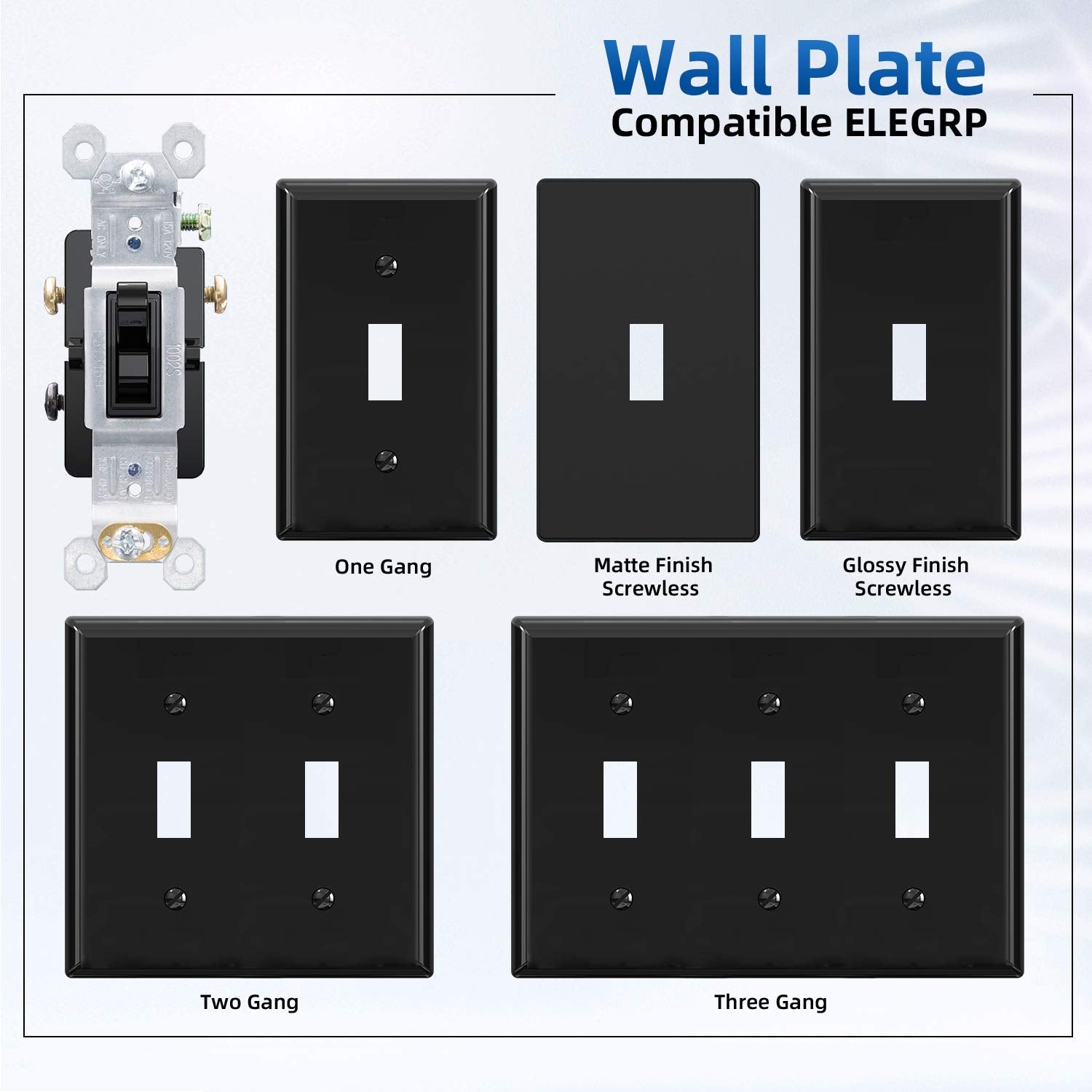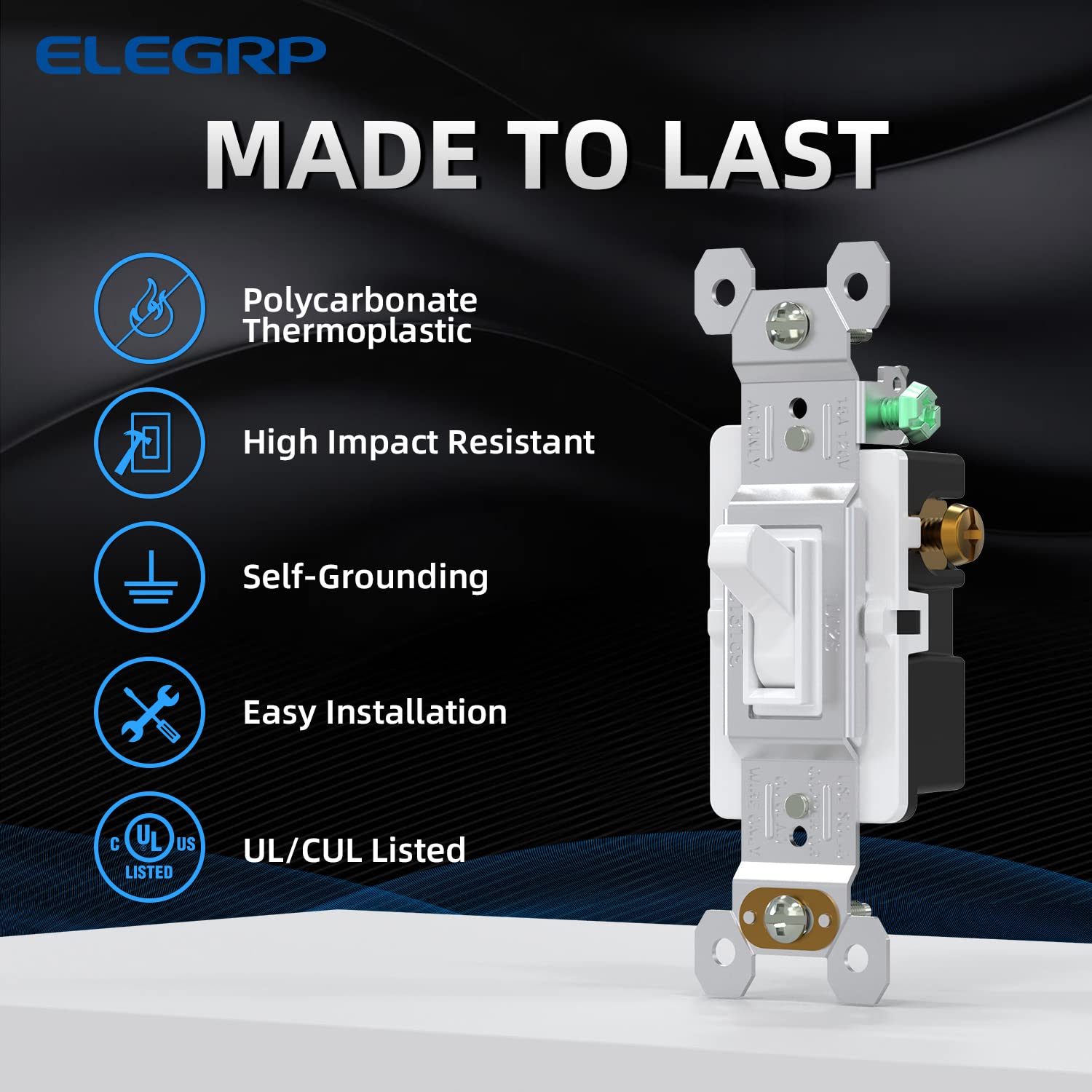 ELEGRP Standard Light Switch, Decorative Single Pole, Self-Grounding, 15A 120-277V, UL Certified, 10 Pack